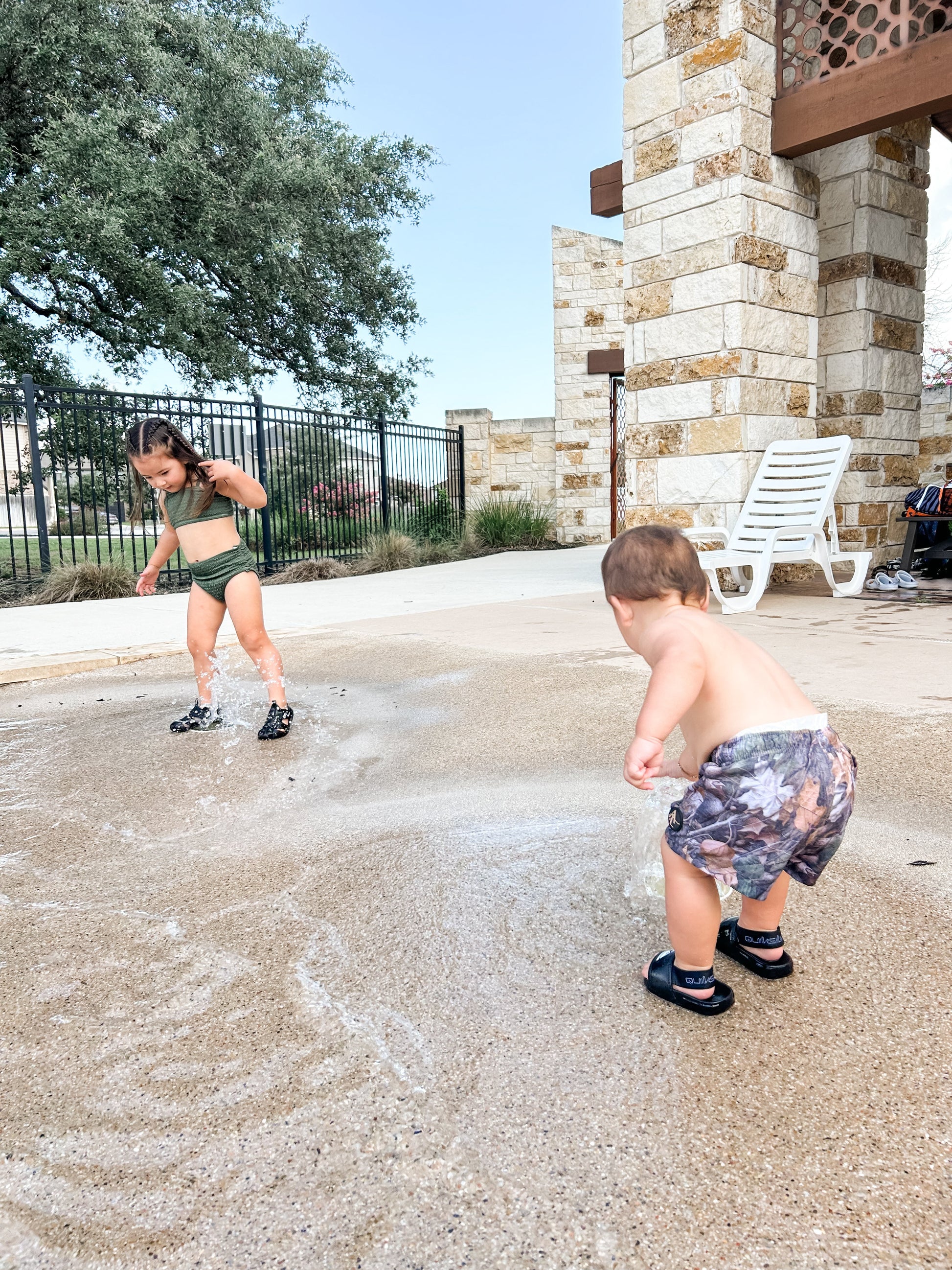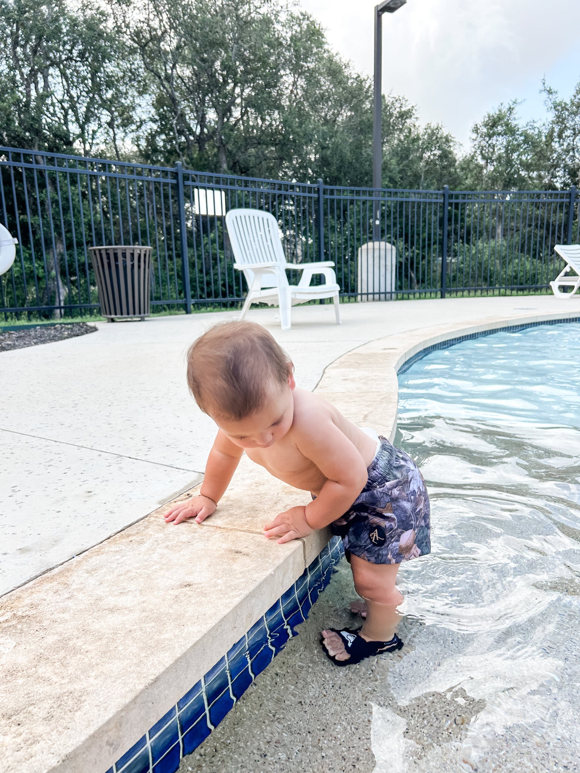 Crafted from quick-drying, lightweight fabric with a comfortable mesh lining, these shorts are made to move with ease—whether it’s baby’s first dip or dad’s cannonball contest. The stylish camo print gives a modern edge to a timeless design, while elastic waistbands and adjustable drawstrings ensure the perfect fit for every age.