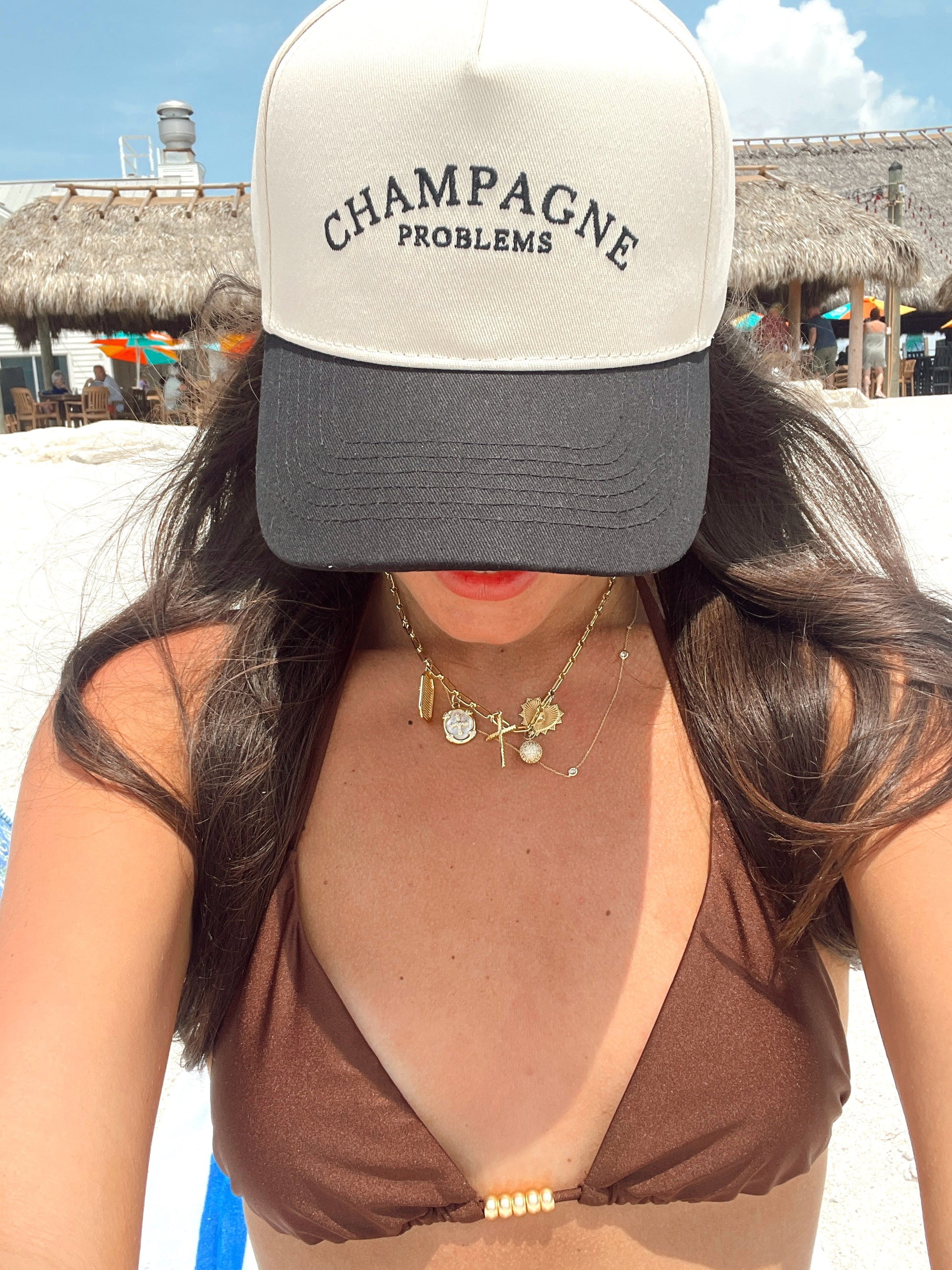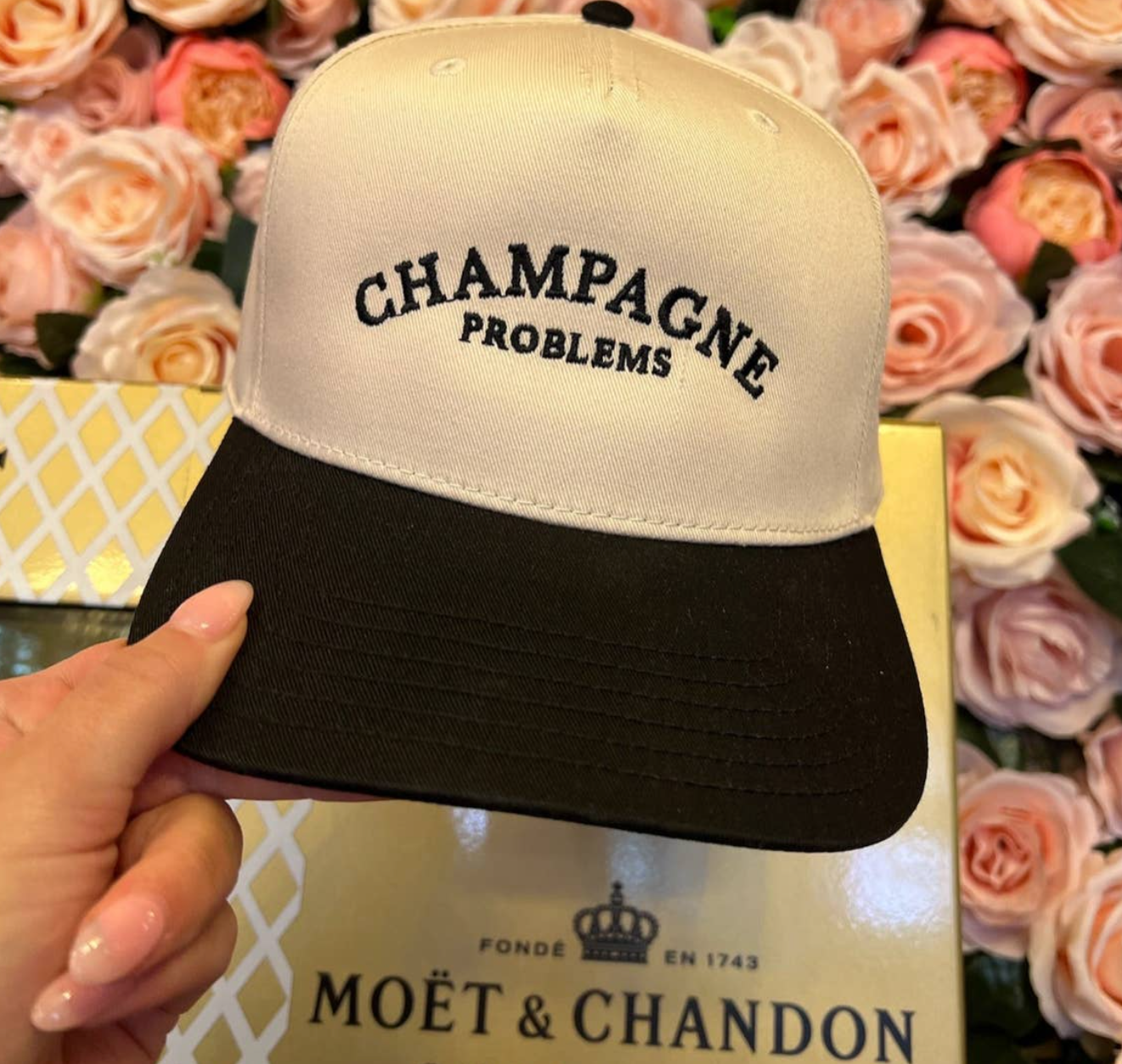 - Black Vintage hat with champagne problems embroidered
