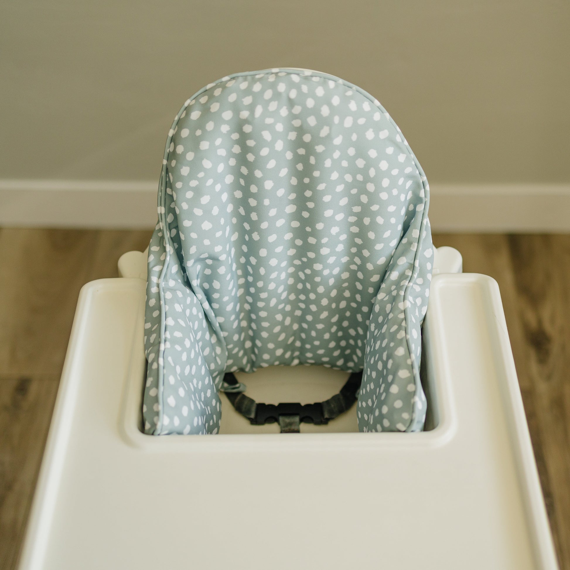 White dots on a green background! Wipeable cushion cover for the IKEA Antilop Highchair