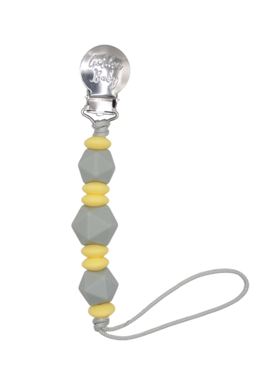 Golden Baby Pacifier Clips are handmade in Meridian, Idaho of domestic and imported materials.
