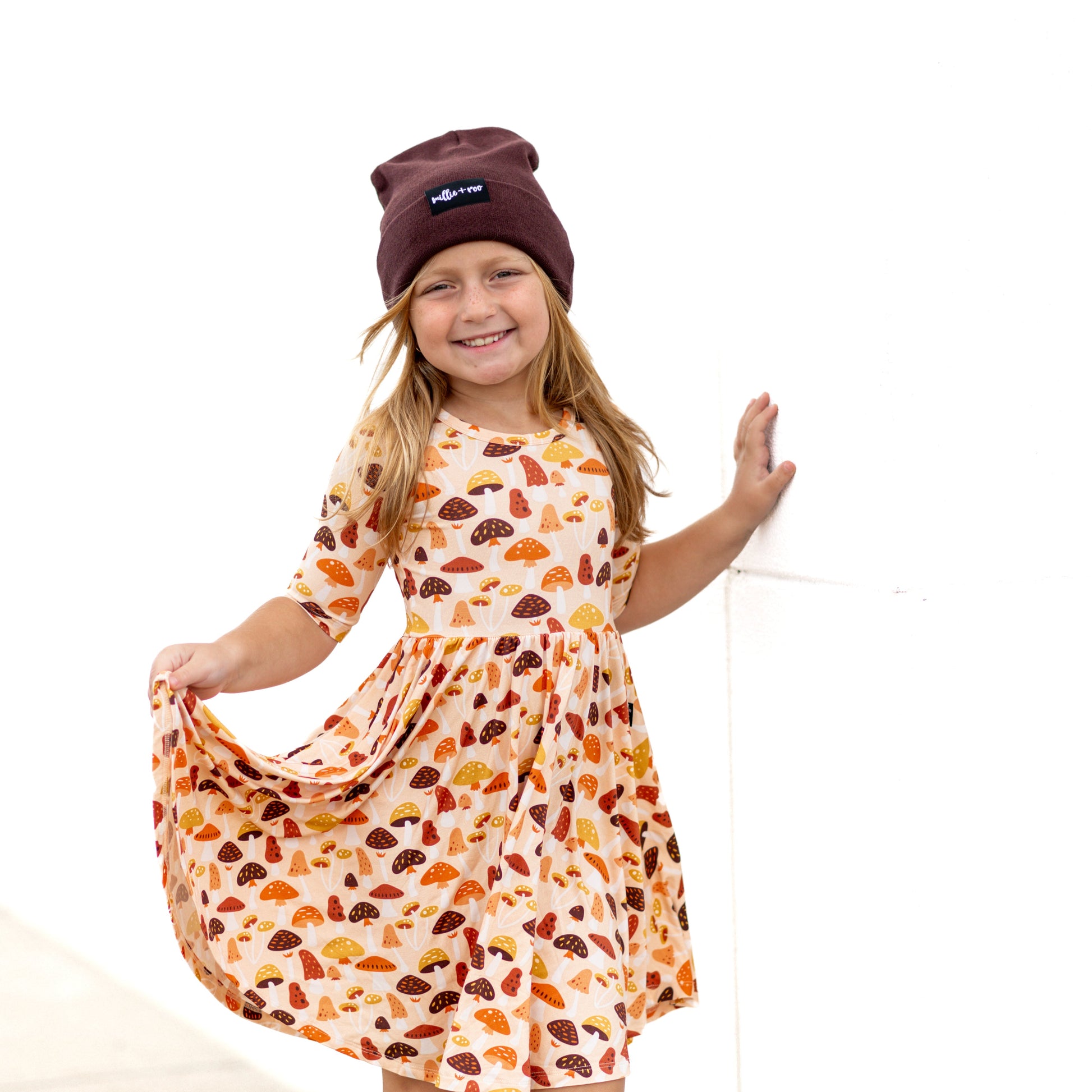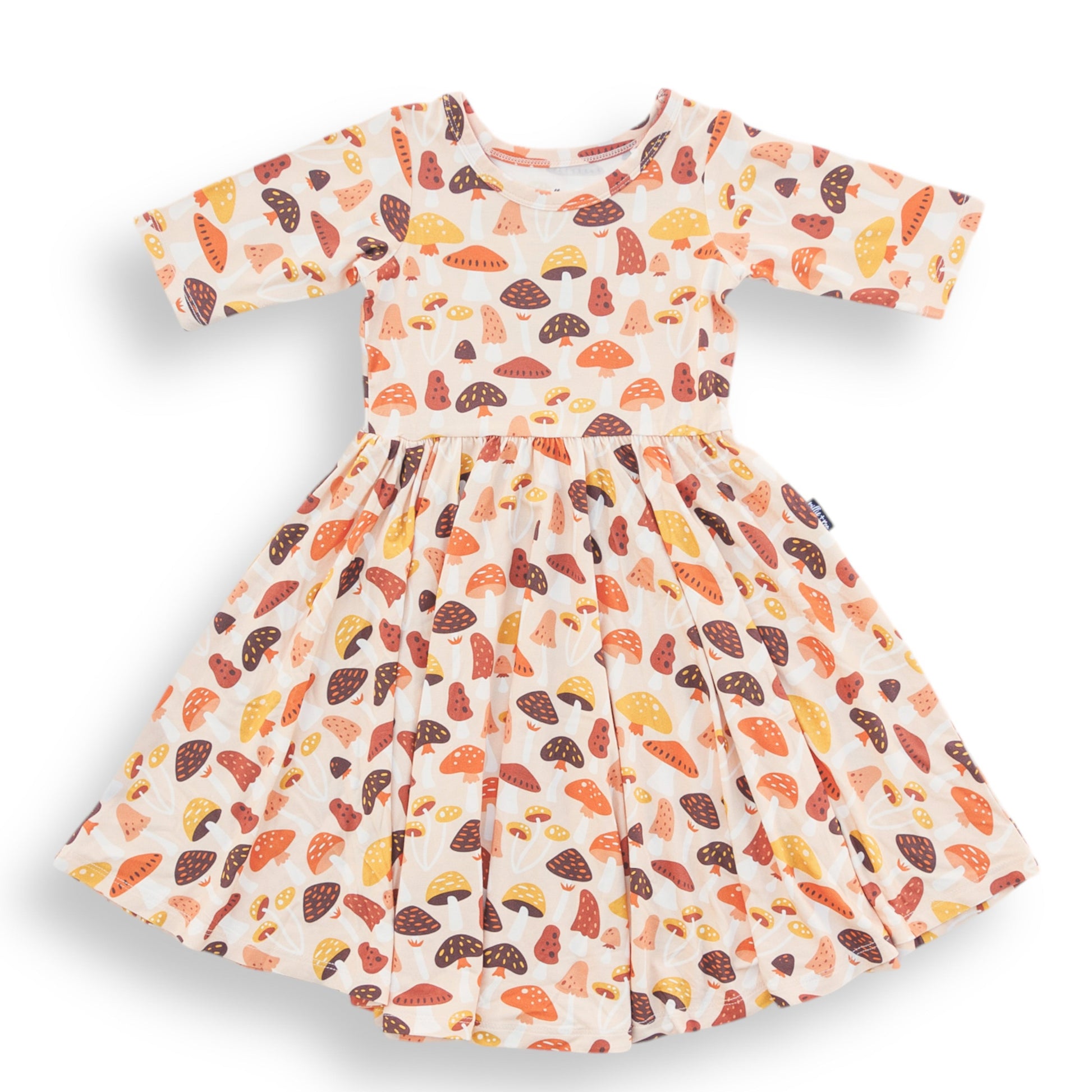 MID SLEEVE TWIRL DRESS- Mushrooms