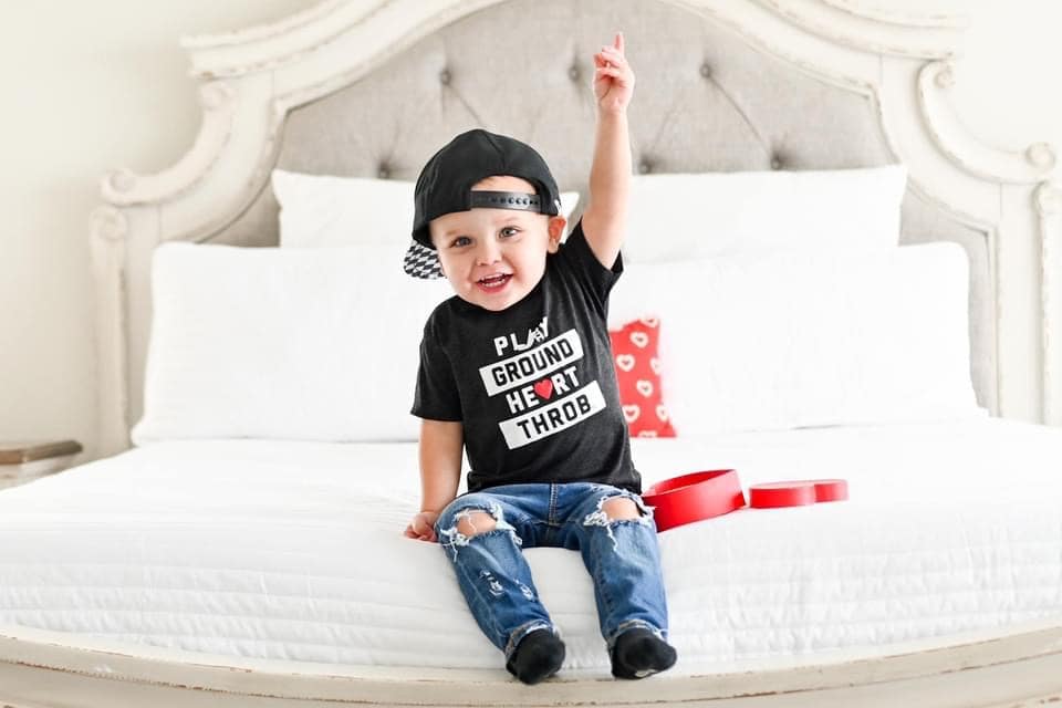 When you've got a little stud man on your hands, and he takes his smile straight to the playground. This Playground Heartthrob graphic tee is a perfect tee for those little men who make the playground their home away from home.