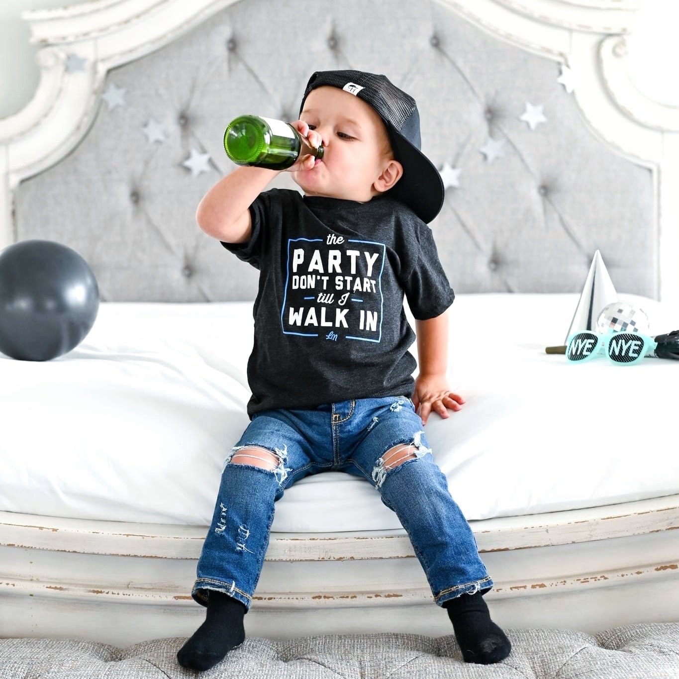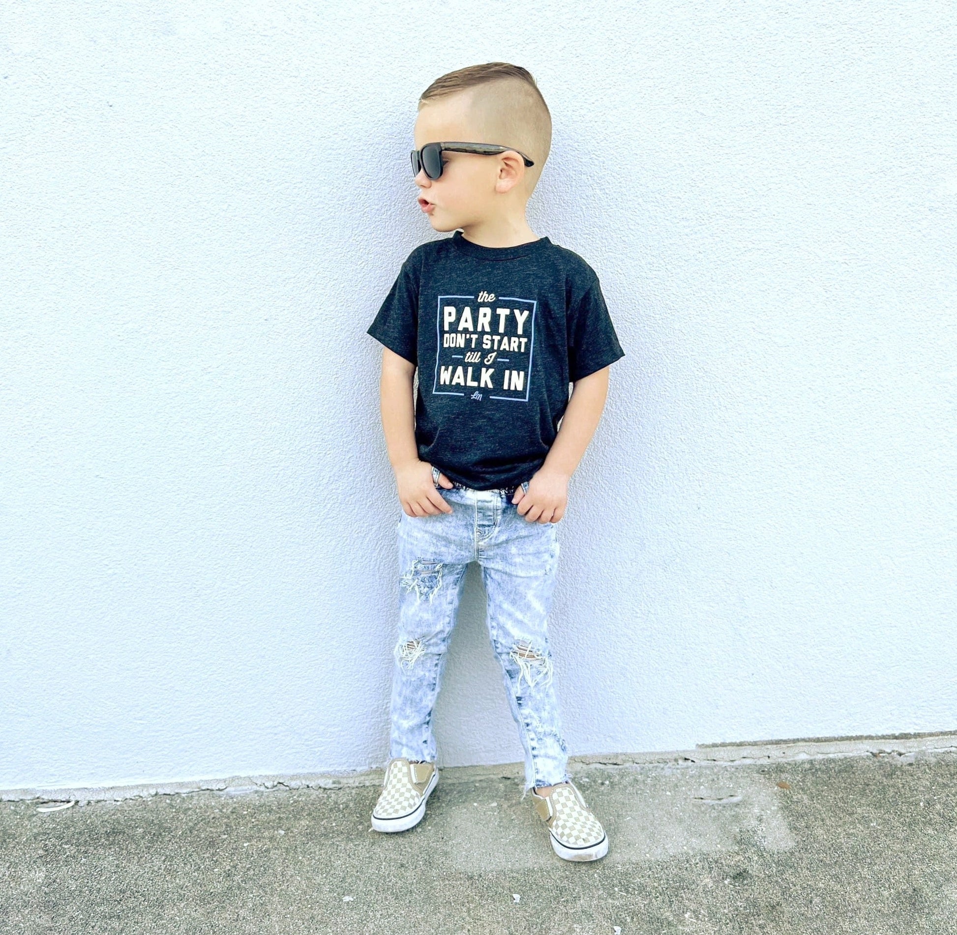 Let your little ones declare that the party doesn't start till they show up, even though their bedtimes are soon with this 'The Party Don't Start Till I Walk In' tee for kids designed exclusively for the Ledger Nash Co brand.