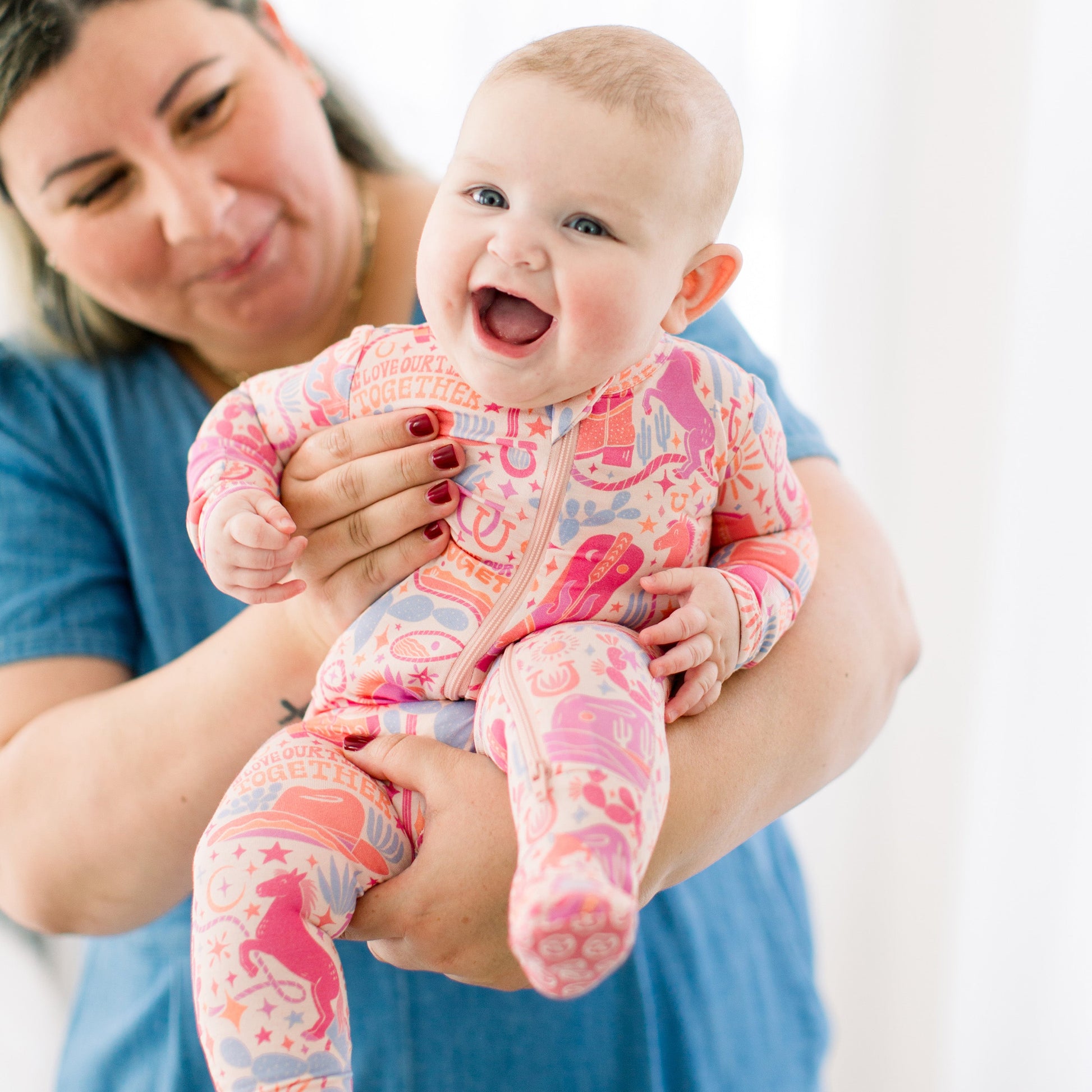 This footie zippered one piece was made with mama (or dada) in mind. Our bespoke, hand-drawn prints are crafted into buttery soft baby pajamas to comfort a tired and struggling mama and spark some joy in her day.