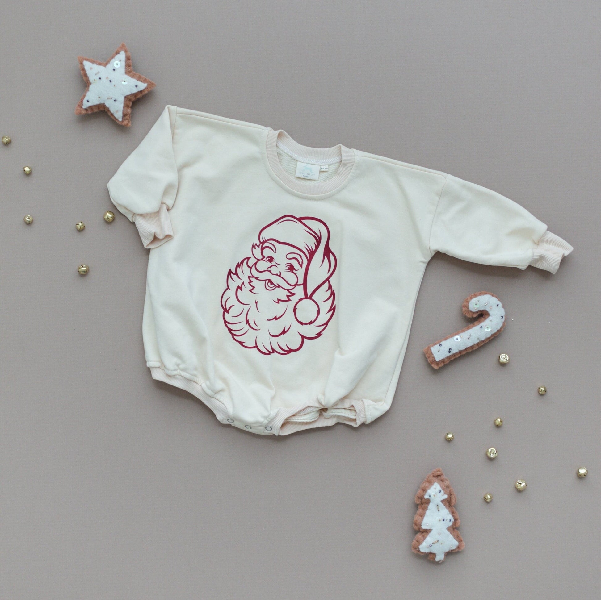 Vintage Santa Graphic Sweatshirt Romper - Cream